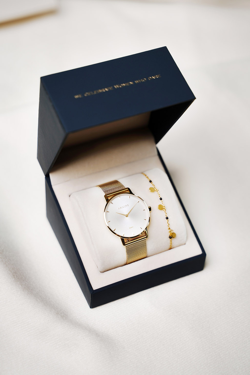 Amalys Giftbox Odile – White/Silver Dial – Stainless Steel Gold Plated Ladies Watch and Bracelet Set