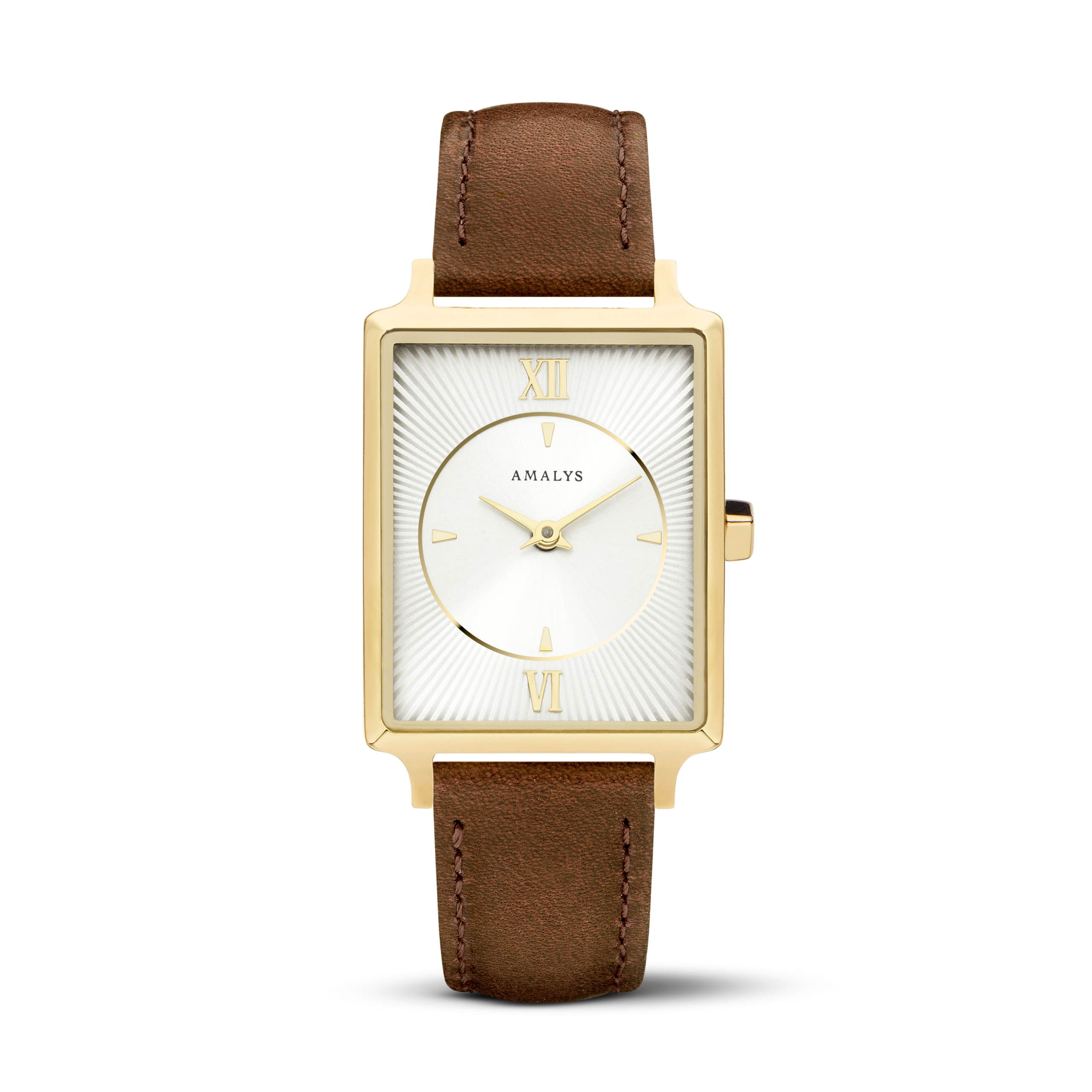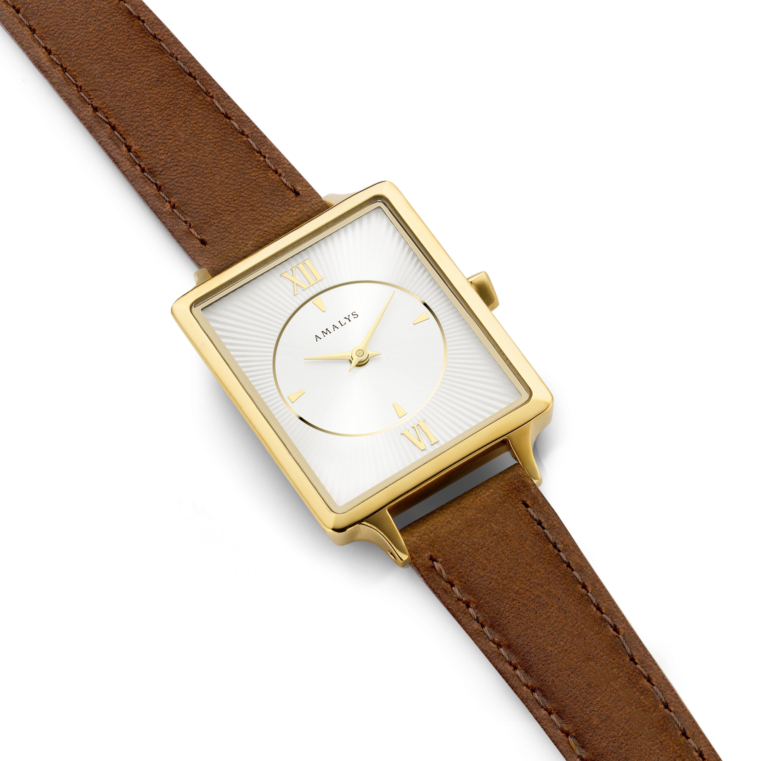 Amalys Mathilda – Gold Plated White Dial – Brown Leather Strap Ladies Watch