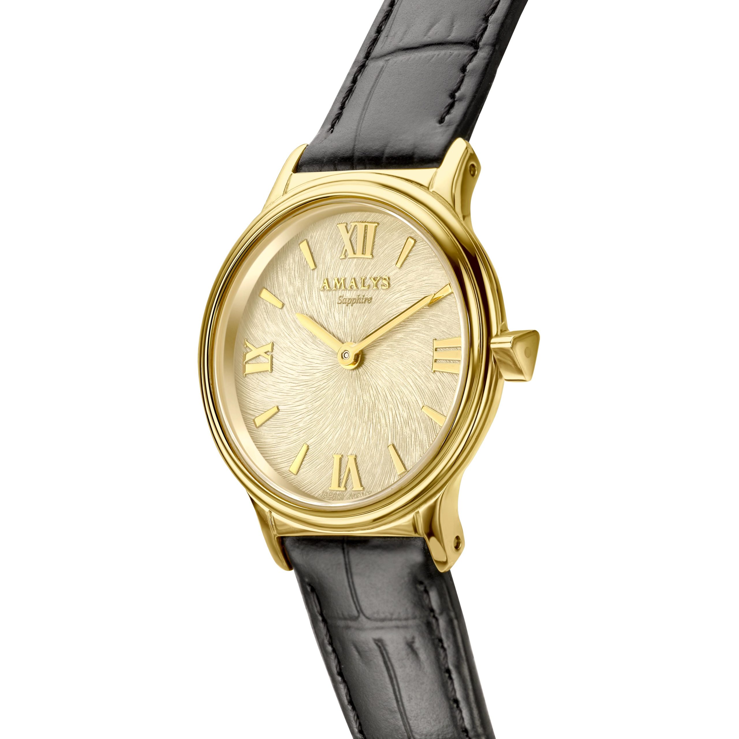 Amalys Sofia- Gold Brushed Dial – Black Leather Strap Ladies Watch