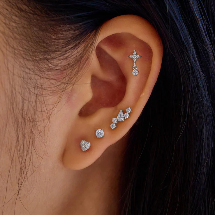 The celestial barbell stud features a star-shaped top that suspends a single cubic zirconia, creating delicate movement with every gesture. Combining cosmic inspiration with refined sparkle, it’s perfect for adding stellar dimension to your ear stack.