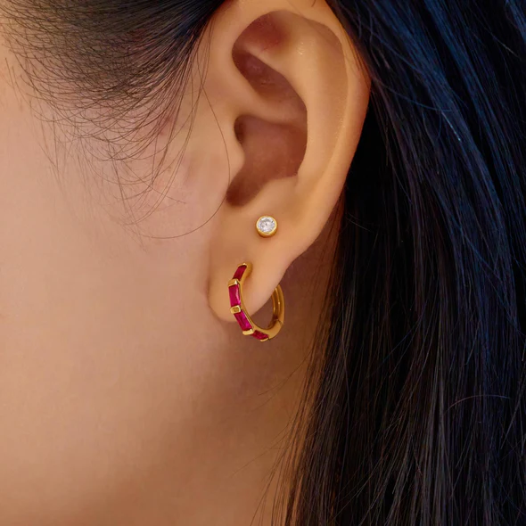 For the festive soul who finds joy in every celebration. These rosé huggies are designed to dazzle and catch the light from every angle—the perfect finale to curate your own ear party. Unwrap a pair for your own festive glow or share the sparkle with a fellow joy-bringer.