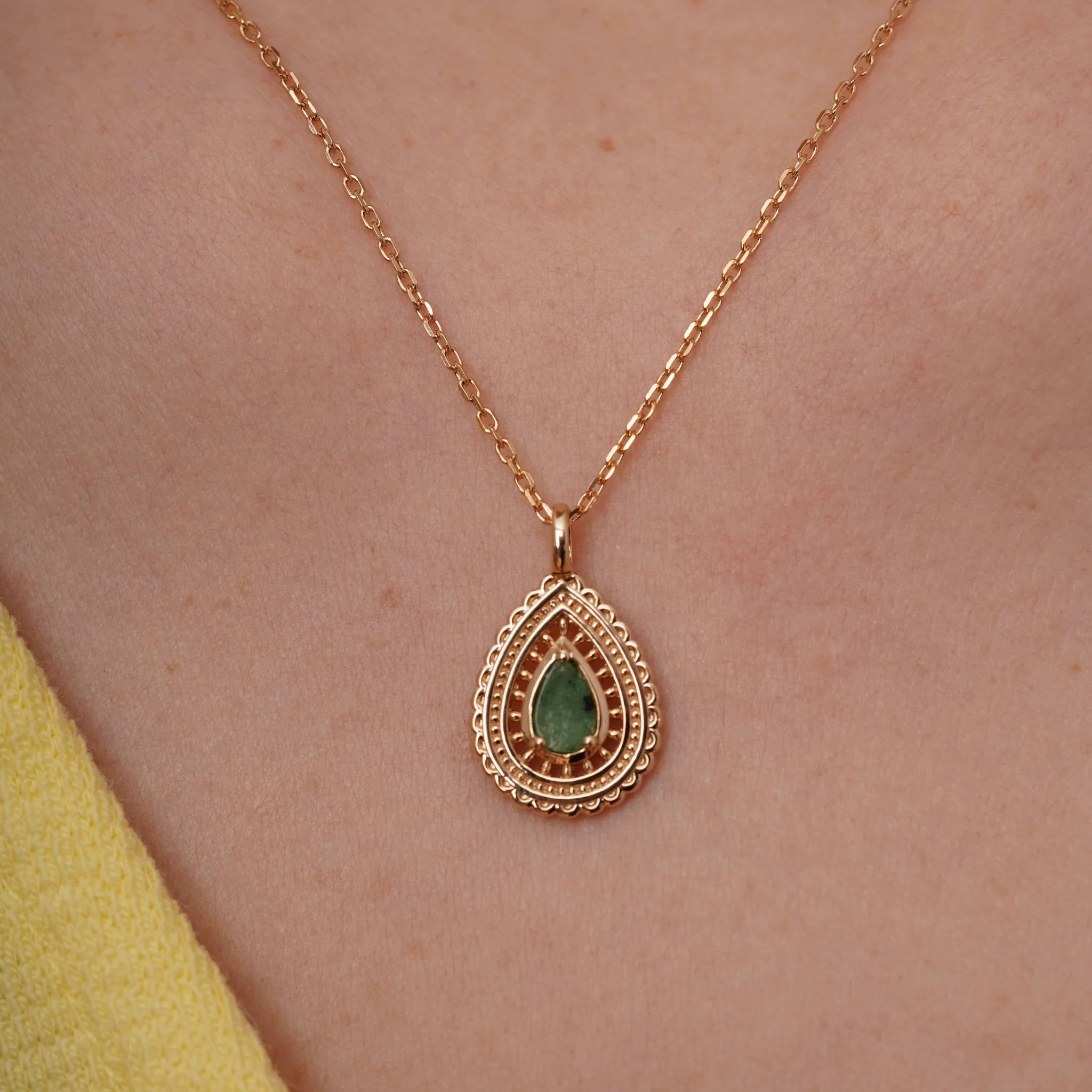 Delicate yet eye-catching, this leaf-shaped pendant brings an elegant, nature-inspired touch to any look. The intricate detailing of the leaf design creates a sense of movement and texture, catching the light with a soft, refined glow that feels both timeless and modern. Thoughtfully crafted for effortless wear, its graceful silhouette offers understated sophistication while still making a meaningful statement. Perfect for everyday styling or layering with other pieces, this pendant is more than an accessory—it’s a symbol of growth, beauty, and polished elegance.