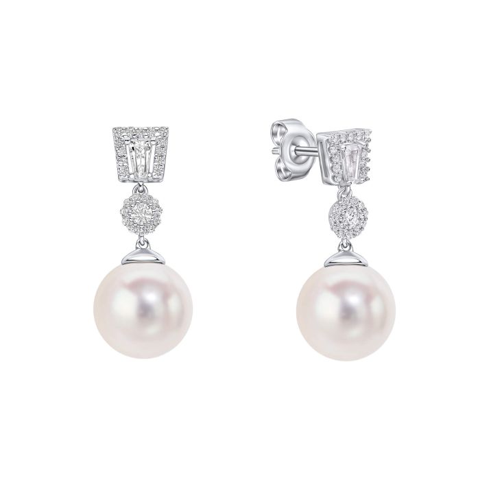 An ode to elegance, these drop earrings are the perfect finishing touch for any glamorous occasion. Crafted from sterling silver with a triple plating of platinum, palladium, and rhodium, they feature dazzling Diamonfire zirconia stones that cascade into a lustrous shell pearl drop, exuding refined sparkle and sophistication. Whether worn to a candlelit dinner, a gala event, or a special celebration, these earrings bring effortless glamour, elevating any look!