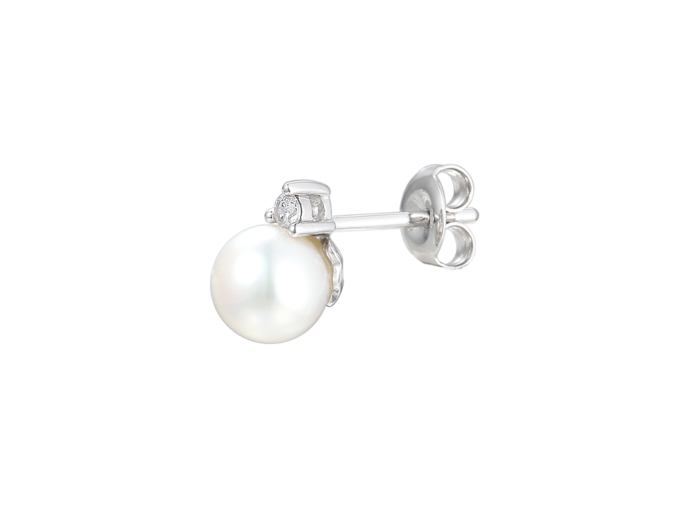 These beautiful earrings are crafted in sterling silver. Featuring a sparkling white cubic zirconia stone on top of a fresh water pearl.  Elegant and Timeless. The perfect gift for someone you adore. Matching pendant available.