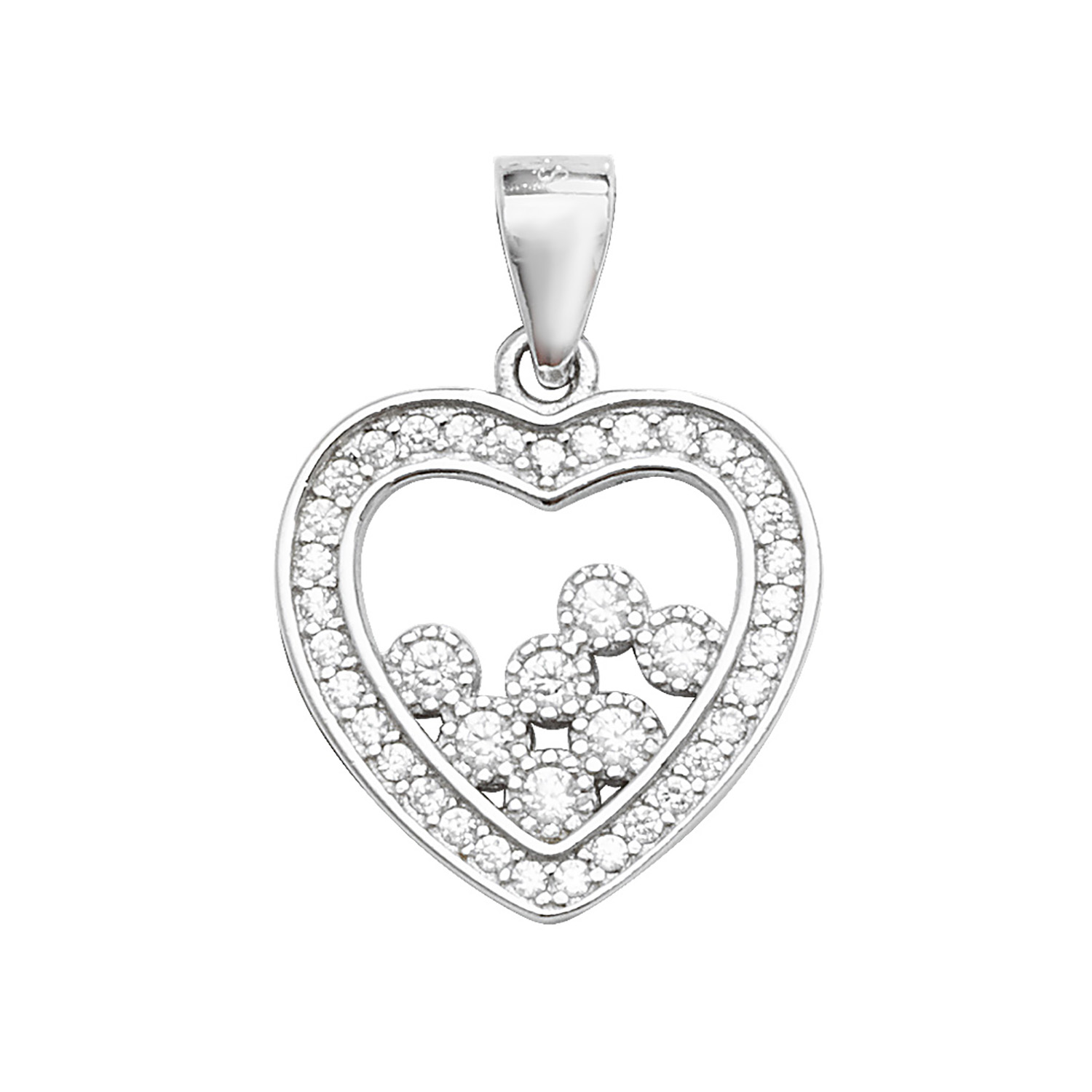 Sterling Silver CZ Open Heart and Cluster Pendant