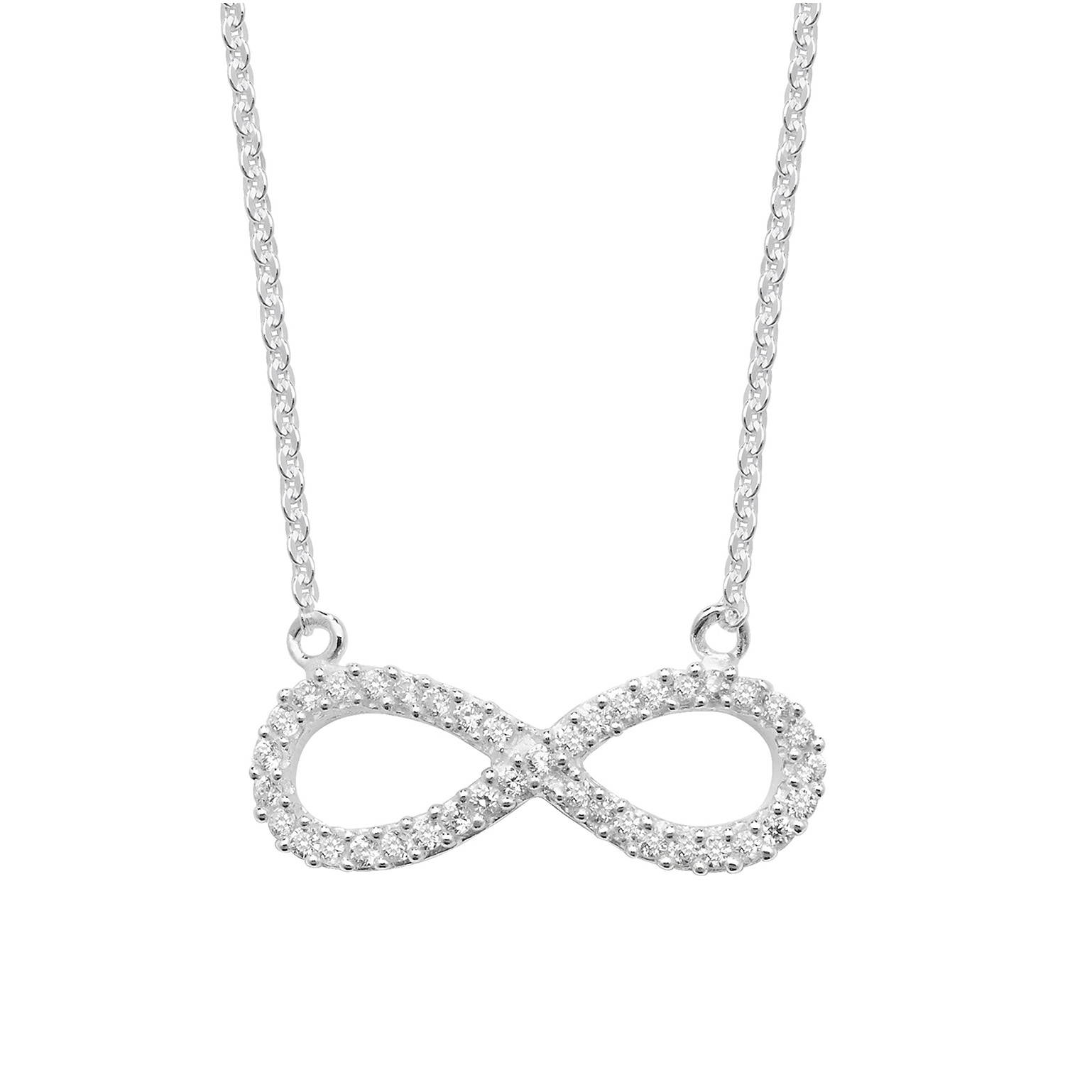 This beautiful chain is crafted in sterling silver. Featuring an Infinity symbol with sparkling white cubic zirconia stones. The infinity symbol represents an unending bond between two people, no beginning middle or end! making this pendant the perfect gift.