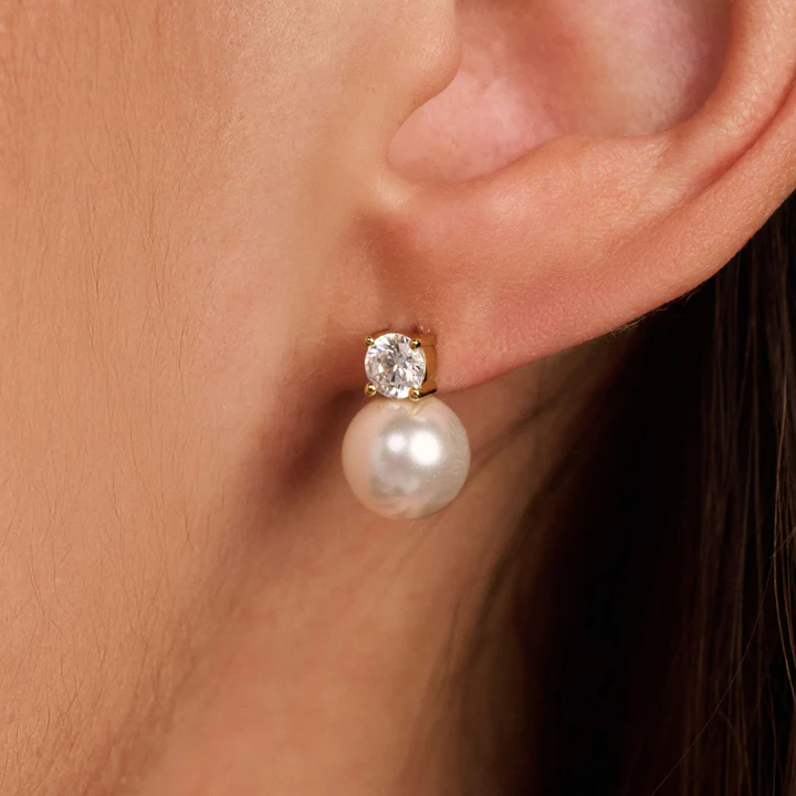 These zirconia pearl earrings are crafted from high-quality 925 sterling silver and designed as refined stud earrings. Above the pearl, a brilliant zirconia stone is set in an 18ct gold vermeil setting, creating a warm contrast with the silver and the soft lustre of the pearl. The pearl is finished with a smooth, luminous surface that enhances its elegant appearance.