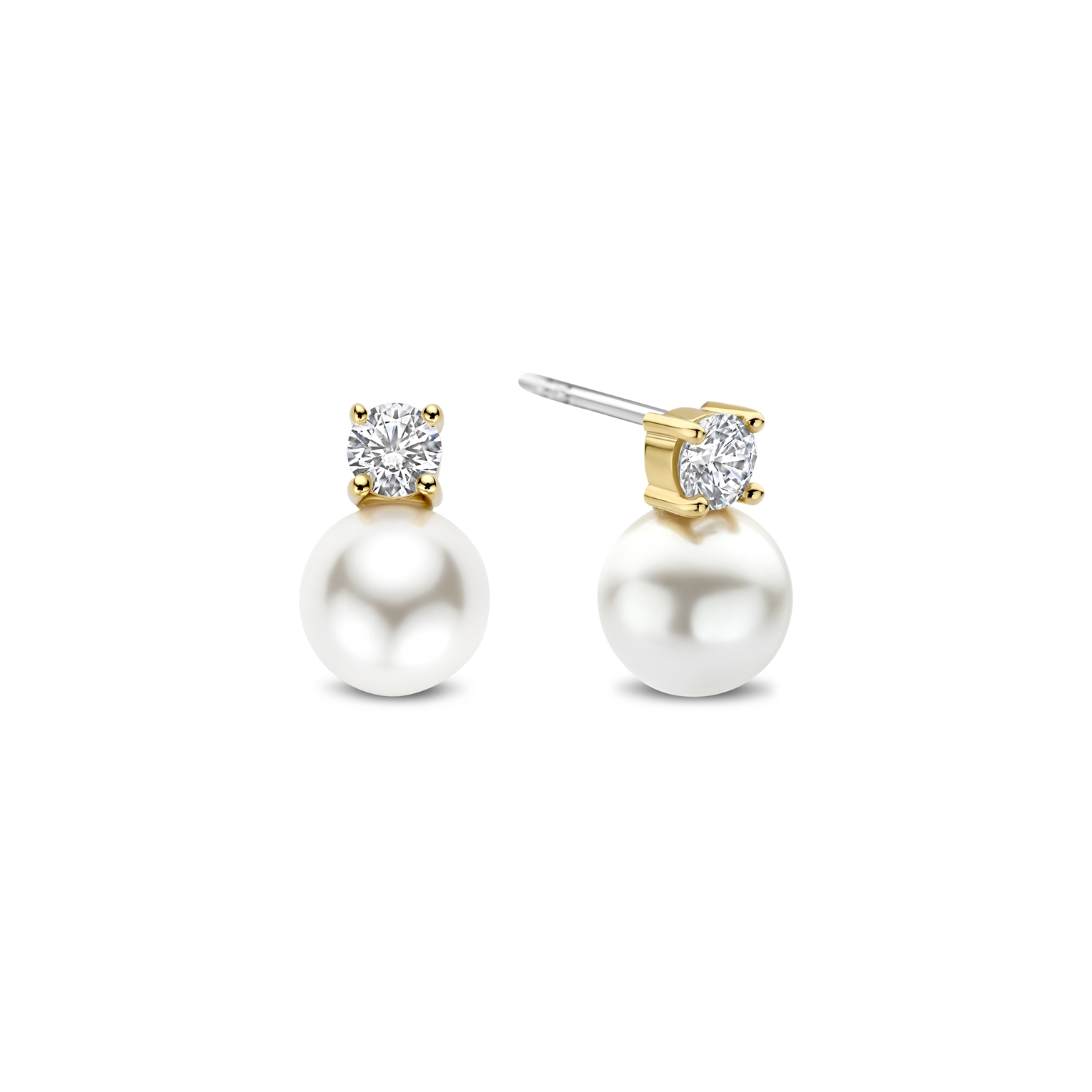Ti Sento Sterling Silver Gold Plated CZ Pearl Stud Earrings